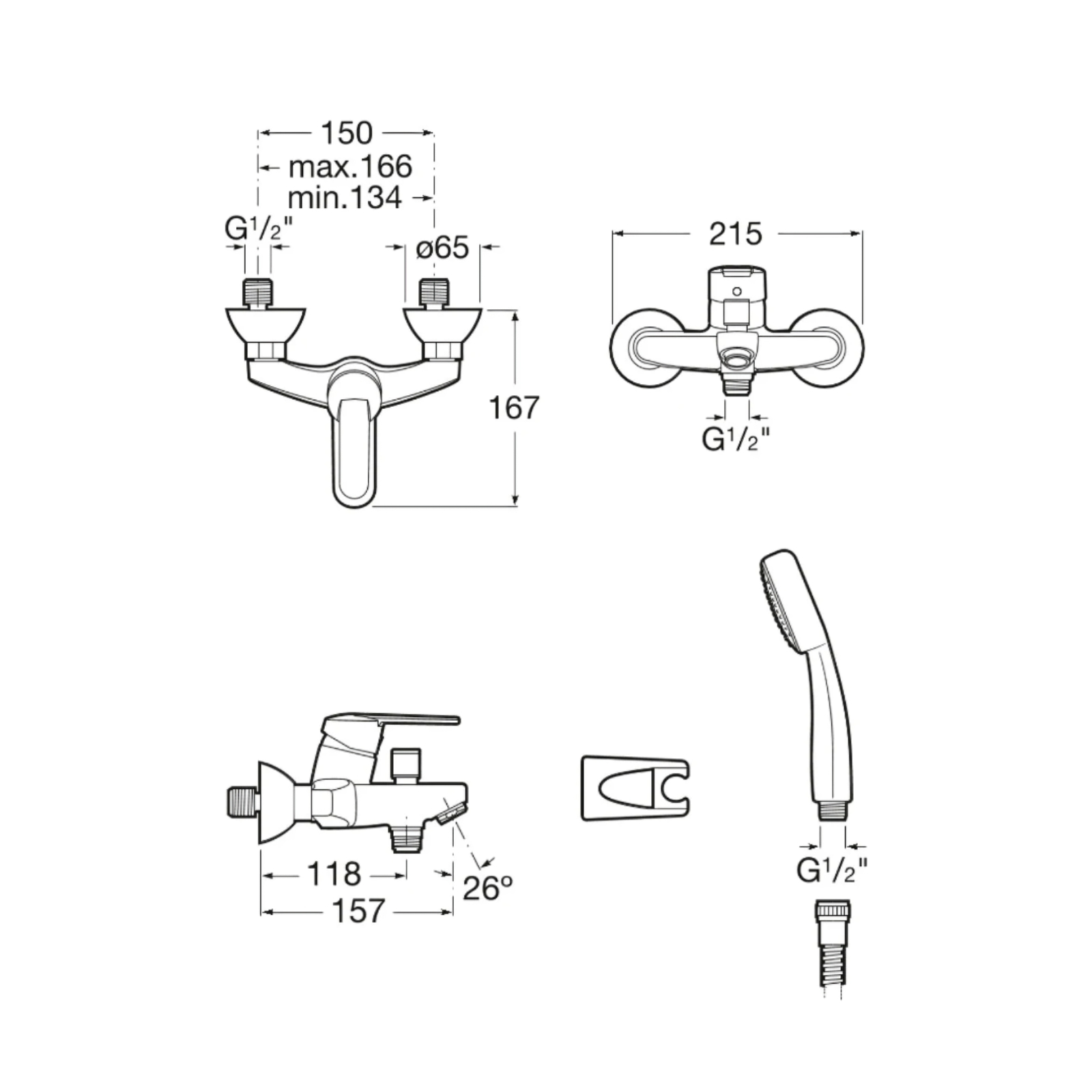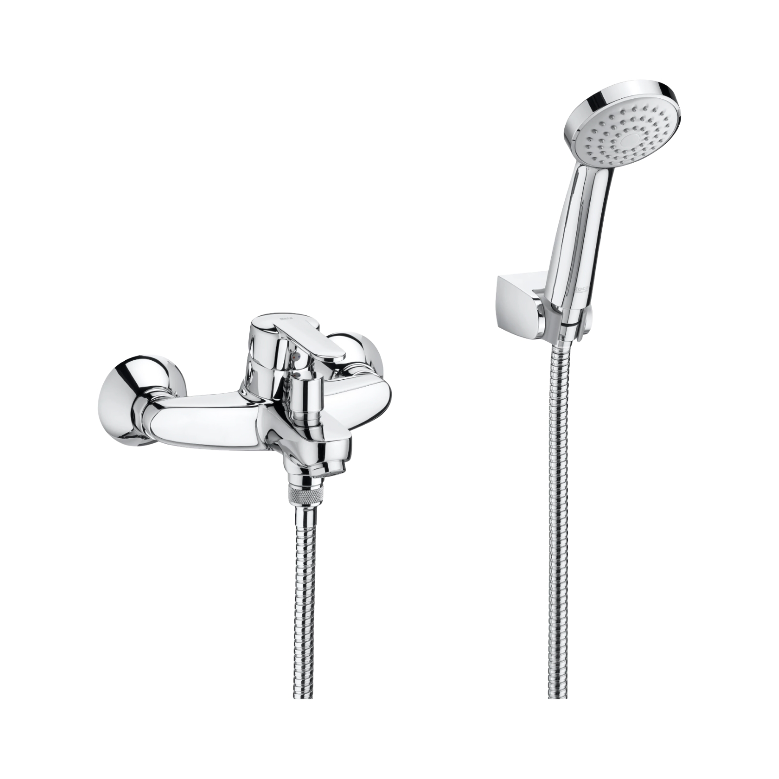 Montajul se realizeaza pe perete, prin doua orificii de fixare, iar bateria este dotata cu racord standard G 1/2". Pachetul contine toate accesoriile necesare, inclusiv para de dus functionala, furtun flexibil cu lungimea de 1,7 m si suport fix de perete, asigurand o utilizare practica si un confort optim in baie.