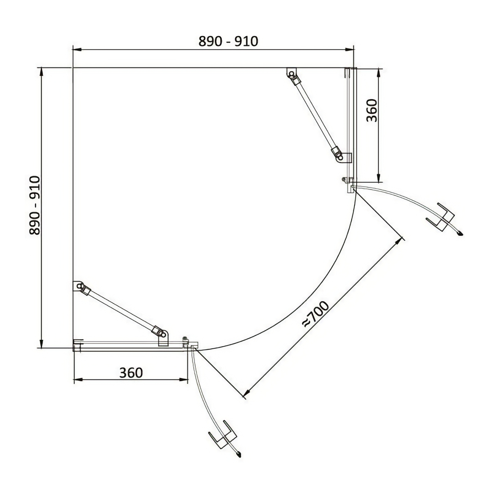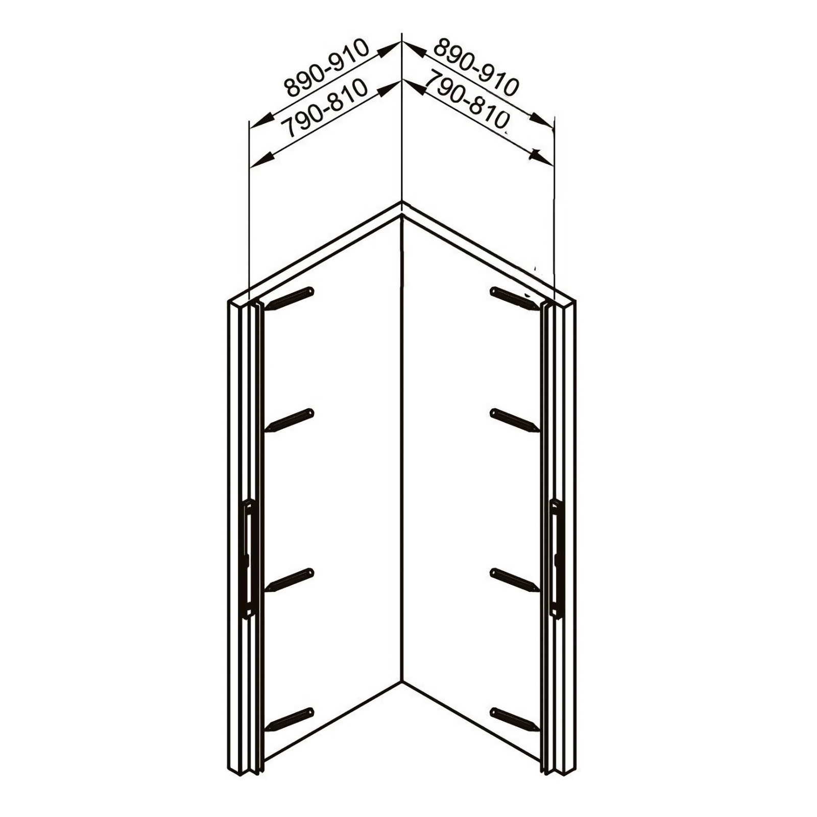 Dimensiunile de 90 x 90 x 200 cm o fac potrivita pentru bai de dimensiuni medii, iar sistemul de reglaj intre 890 si 910 mm permite o adaptare flexibila la particularitatile spatiului de montaj.