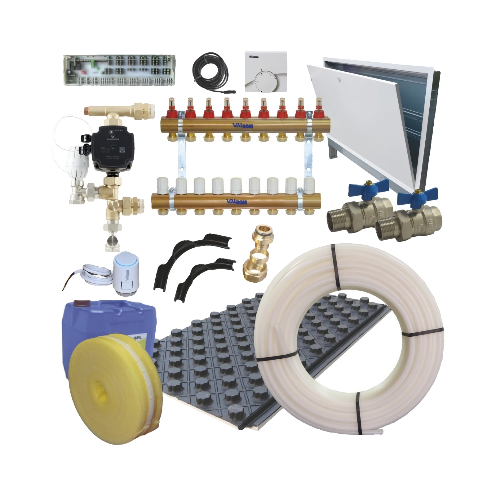 Kit incalzire in pardoseala VALROM - Suprafata 120 mp baza cu automatizare si kit amestec este un sistem complet, proiectat pentru a oferi confort termic optim, eficienta energetica si siguranta pe termen lung. Acest pachet contine toate componentele necesare pentru instalarea incalzirii in pardoseala pe o suprafata de aproximativ 120 mp, fiind ideal pentru locuinte moderne, spatii rezidentiale sau birouri unde se doreste o solutie de incalzire eficienta, economica si estetica.