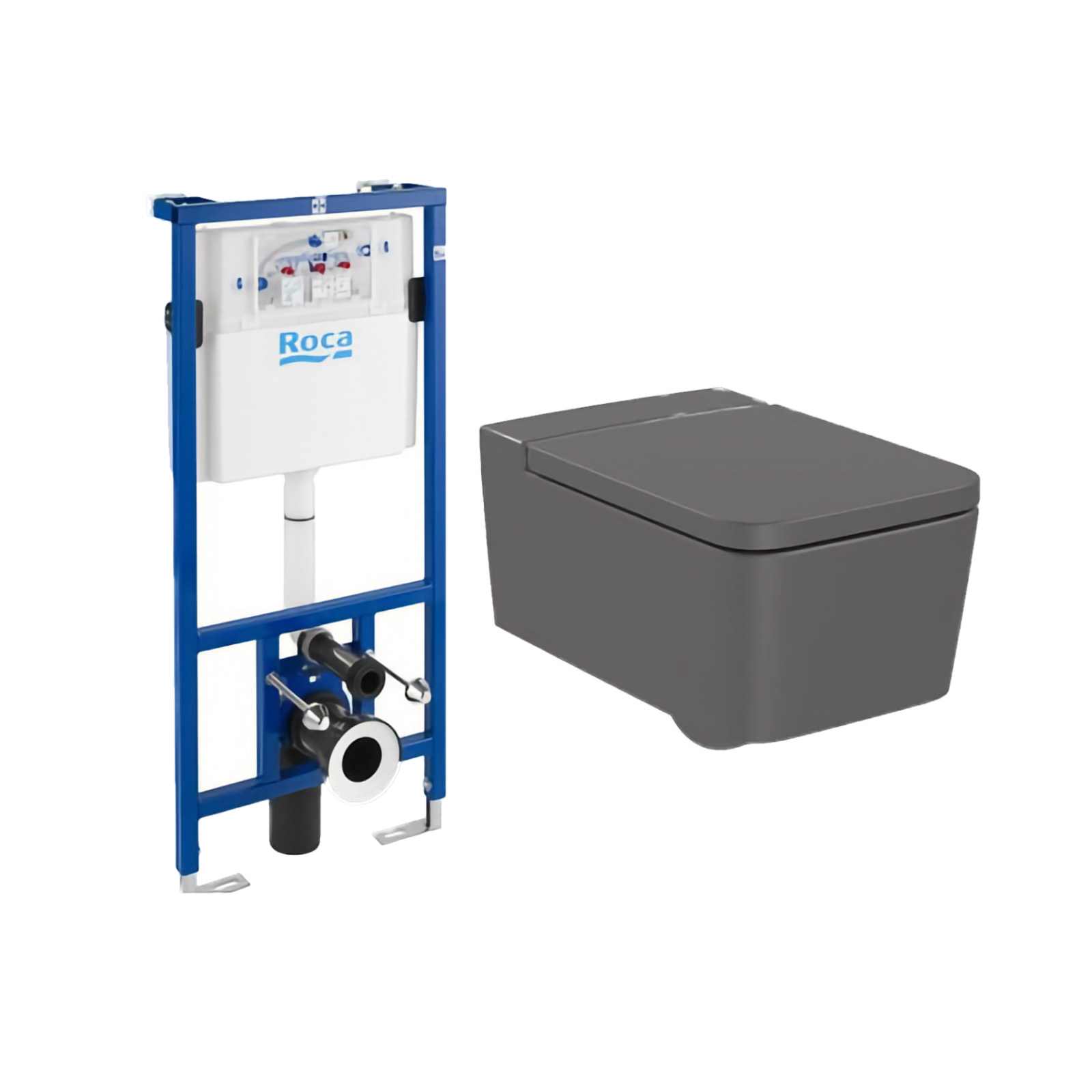 Pachetul WC suspendat Rimless Inspira Square Roca, in eleganta culoare onyx, este alegerea ideala pentru cei care isi doresc o baie contemporana, cu un design minimalist si tehnologii de ultima generatie. Acest set complet include sistemul de instalare cu rezervor incastrat, vasul WC Rimless cu fixare complet ascunsa si capac Supralit® cu inchidere lenta, balamale metalice si sistem EasyRemove pentru o curatare facila.