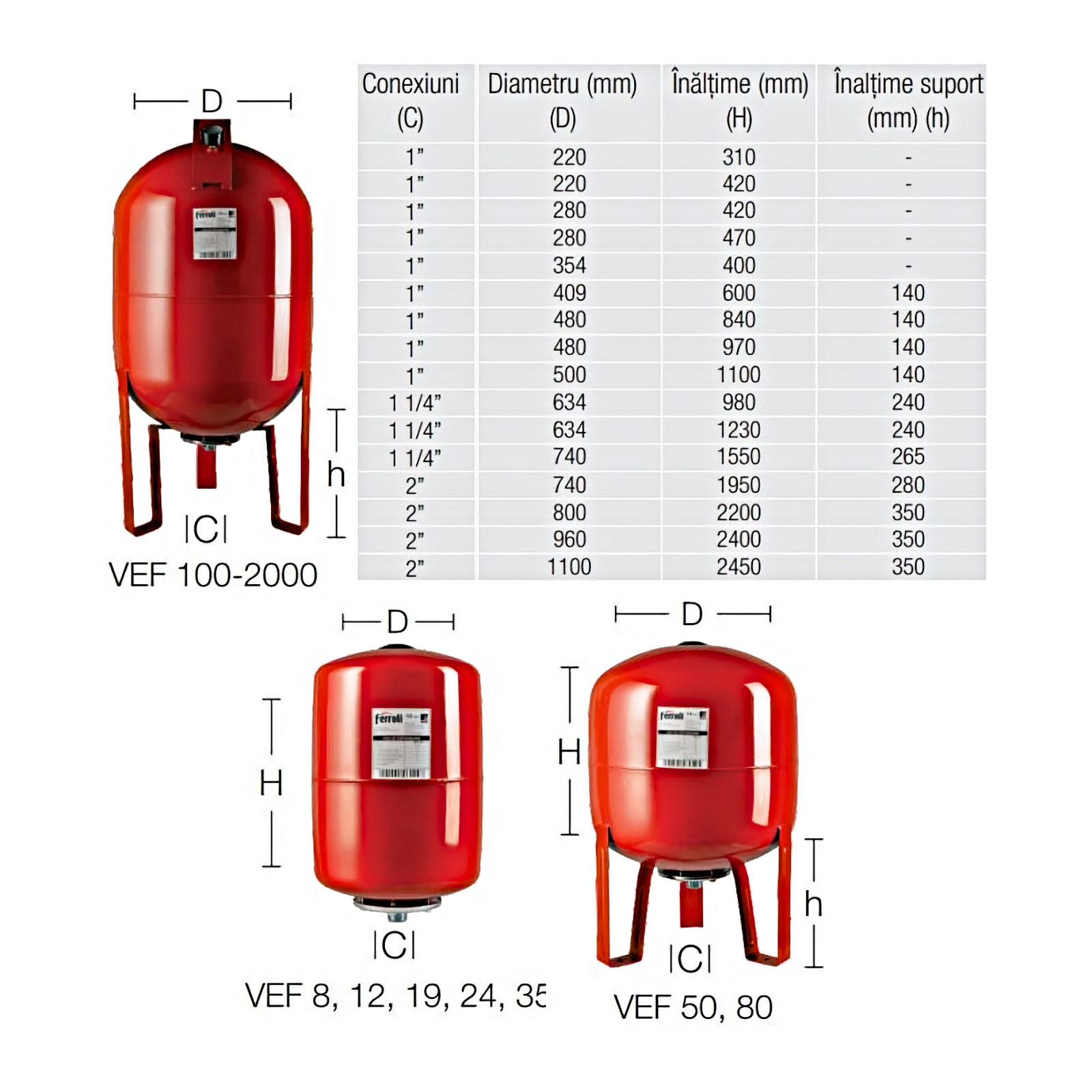 Vasul de expansiune VEF Ferroli este disponibil intr-o gama variata de capacitati, potrivite pentru orice tip de aplicatie: